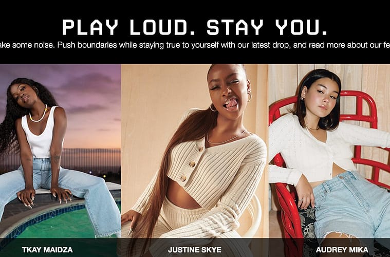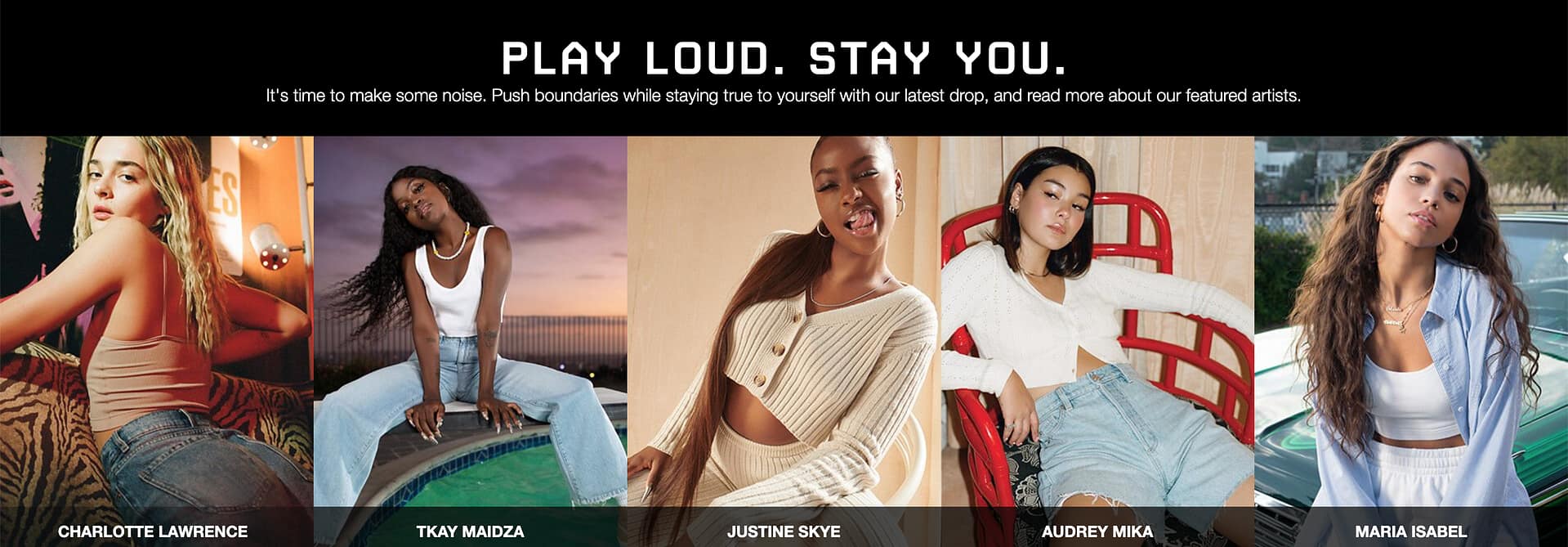 This new spring campaign, fuses fashion and music, encouraging audiences to turn up the noise on their individualism; featuring up-and-coming recording artists Justine Skye, Charlotte Lawrence, Tkay Maidza, Audrey Mika, and Maria Isabel.