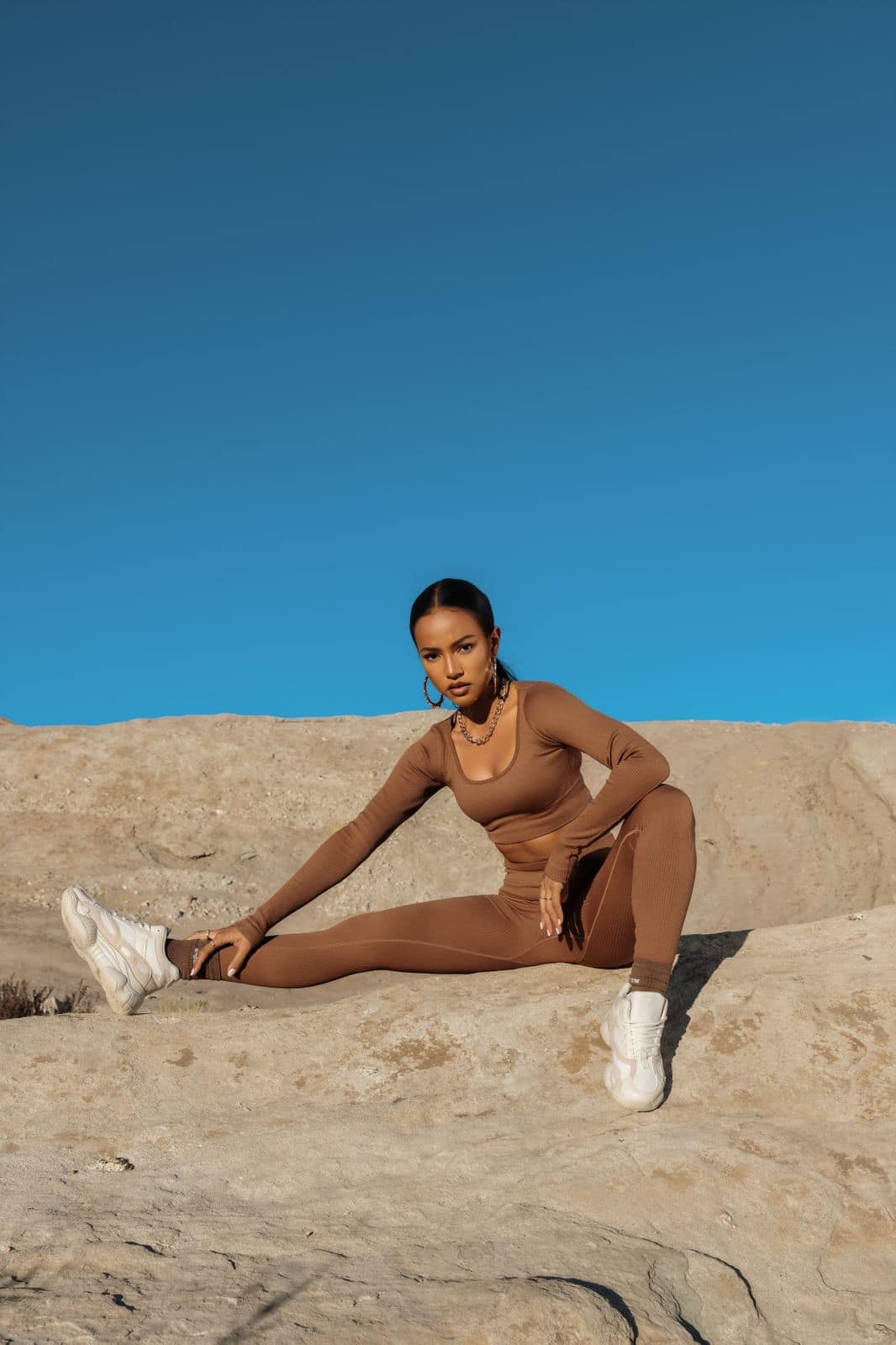 The outfits curated by Karrueche have the classic sport silhouettes in both seamless or sculpted fabrics. Seamless is exactly what you’d expect with a silky smooth fabric that has no lines. The sculpted collection brings more shape to each look. Each workout garment is meant to break a sweat in and check all the boxes for your workout wear needs. Whether you want to work out or just relax, each piece can be mixed matched and paired with anything, including some oversized hoodies.
