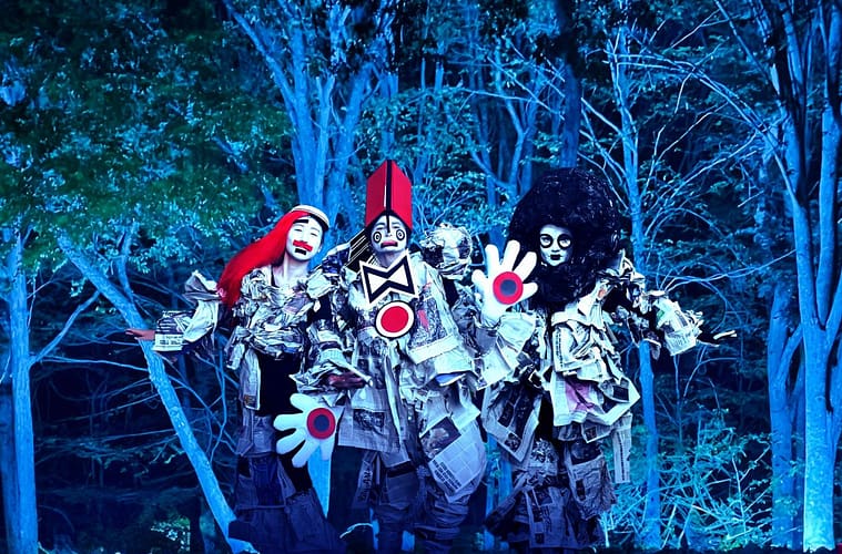 Robert Wilson and his ensemble cast of Ubu didn’t let the cloudburst stop the show. The US and international performers clad in costumes made entirely of newspaper took to the stage for a condensed version of the show narrated by Wilson himself. The cast of Ubu featured the ensemble cast of Yunseo Choi (Republic of Korea), Bonnie Comley (United States), Evelyn Dugan (United States), Cecilia Xuetong Feng (China), Marianna Kavallierator (Greece), Casilda Madrazo (Mexico), Katimari Niskala (Finland), Sorin Prodea (Romania), Anthony Roques (France), Agathe Vidal (France), Sienna Vila Holloway (Spain)