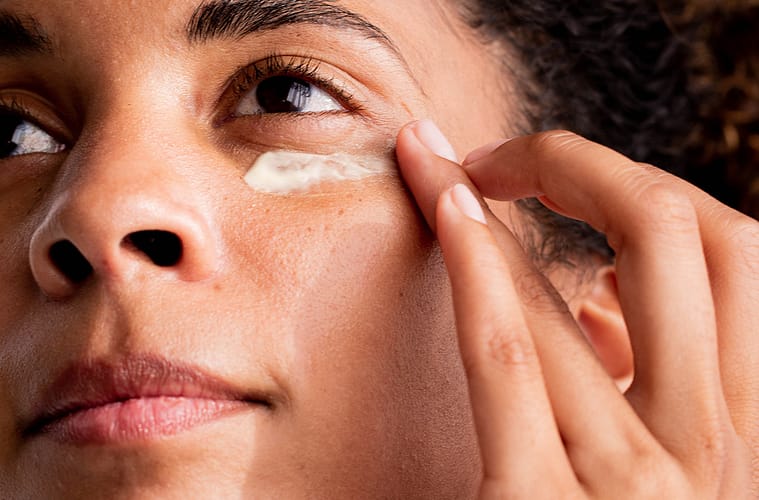 It is great for all skin types. Just tap a small amount gently around the entire eye area, including lids.
