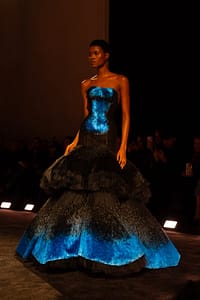 Sculptural Construction: Corsets and bodices were engineered like armor. Shoulders spiked, hips flared and collars erupted with intent, shifting silhouettes into creatures that felt both divine and dangerous.