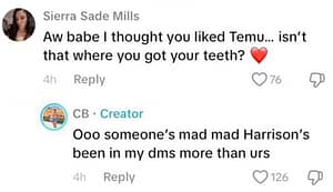 To which Caine replied that “someone’s mad Harrison’s been in my dms more than urs.”
