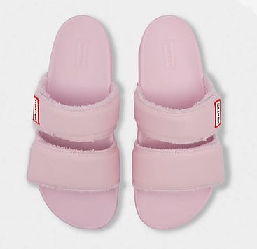 The Hunter original slides with the Terry Towelling Logo is embedded with the iconic logo on a towel fabric for ultra absorbency for those long beach days. The rubber foot bed allows for comfort and agility for all your walks around the beach or pool, with velcro adjustable strap you can feel comfortable barefoot or with socks.