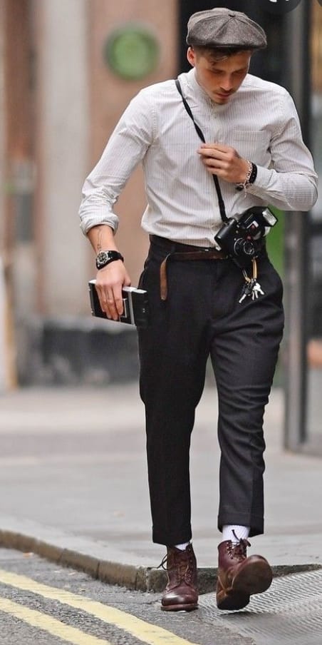 The young brits style can be labelled pretty easily, it is vintage British style, mostly worn trousers with belts and a tucked-in shirt with a flat cap, something is so easily worn but very hard to pull off. Other than that many could label it as skater boy style, which was developed from the Britsh boy style. Skater boy is a vintage look with a rolled-up pair of dickies, a vintage band t-shirt, a shoelace for a belt and white socks and beat-up vans.