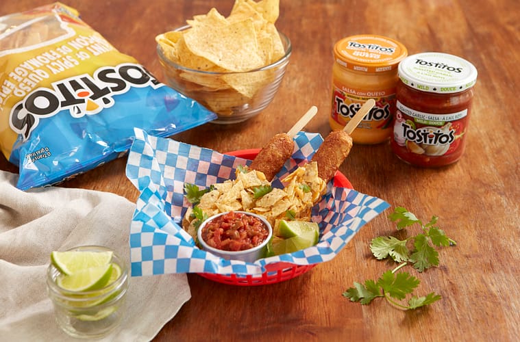 Chef Matt Basile and Tostitos have teamed up to make fun recipes that will remind you of the fair, and be a (small crowd) pleaser at a picnic or bbq this labour day weekend.