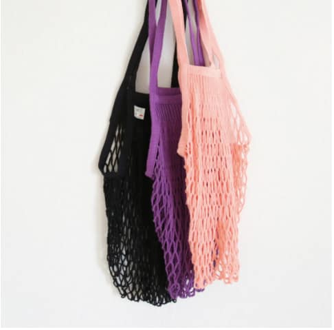 Each bag is strong, expandable, practical, and ecological. The fibres are dyed with Oeko-Tex 100 standards, knitted and stitched in Caen, France. 100% cotton. Currently available in black, rose, and purple. Order by December 11 to receive before the holidays. Measures around 13 1/2 “ long, 25” from shoulder to bottom.