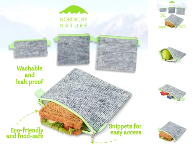 Description: Extra large set of 4 sandwich bags: two extra-large sizes 7.00 inches x 8.0 inches, one large size 6.5 inches x 6.5 inches, and one smaller size 6.5 inches x 3 inches. Non-toxic, phthalate-free, lead-free and BPA-free. Recyclable food bags made from cotton fabric and food-safe polyester. Dishwasher safe, easy to clean. “No questions asked” return policy.