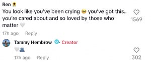 The rumors gained traction when Hembrow posted a TikTok video here where she appeared emotionally distressed, leading some followers to comment that she seemed as if she had been crying.