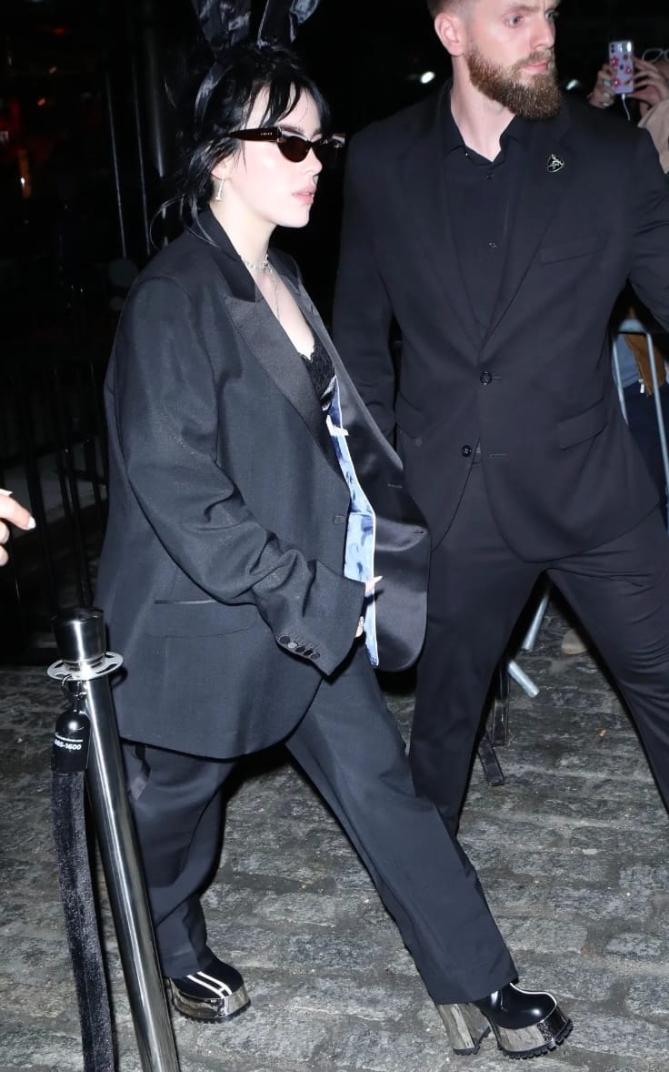 Billie Eilish is a prime example, her upcycled custom Gucci gown was traded for an all-black two-piece suit, pumps, a messy up-do and shades. A not so gilded outfit, but definitely better than the last.
