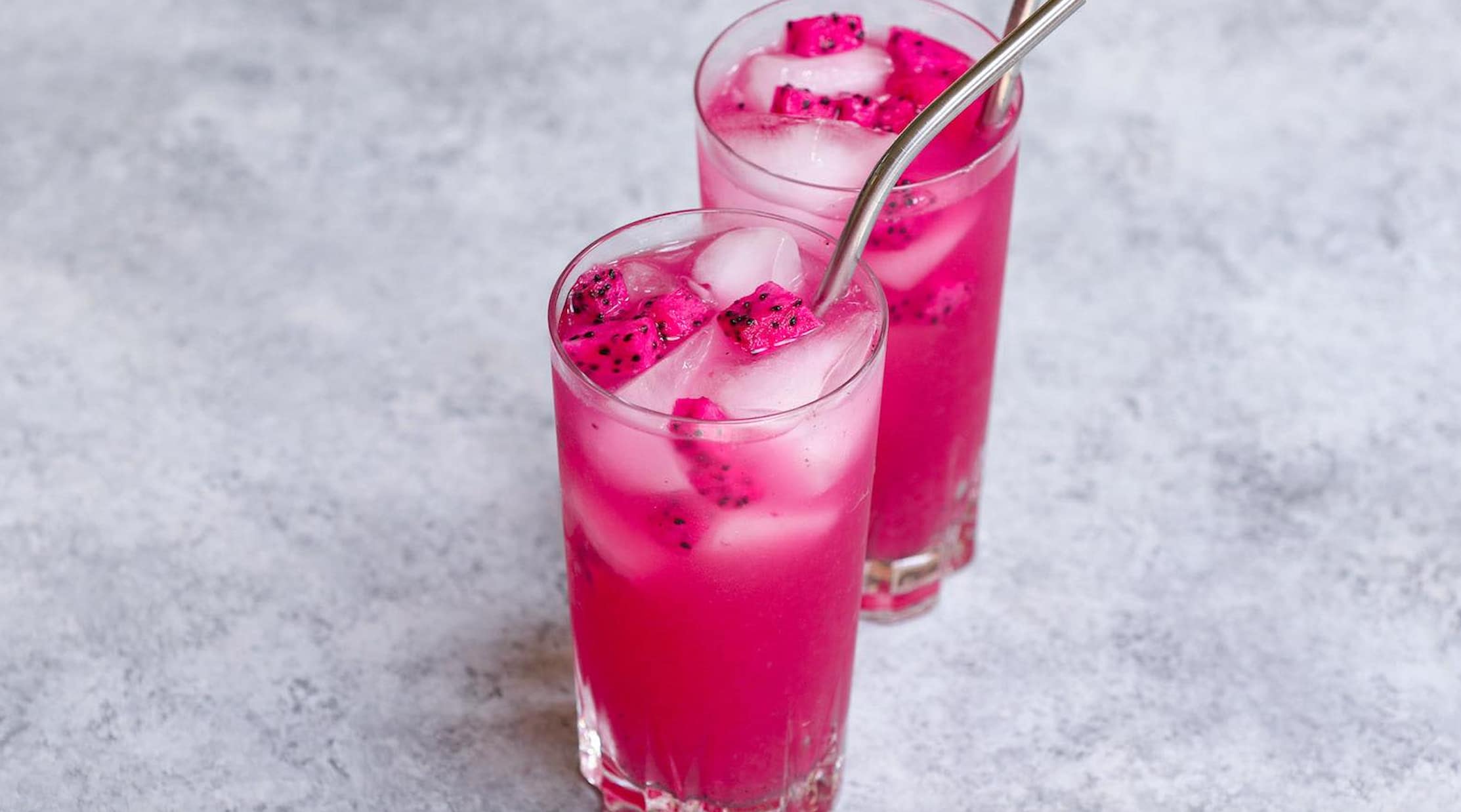Lemonade is essentially synonymous with summertime. It’s light and refreshing, and always pleases a crowd. Nowadays it comes in a variety of flavors, usually made by adding different fruits and ingredients to the lemon juice + water + sugar equation. This combo of mango and dragonfruit mixed into the lemonade is a popular menu item at Starbucks, but now you can make it at home, and add a splash of fruit punch flavor – and that fabulous pink color – to your lemonade.