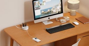 This compact travel power strip solves that problem by keeping everything powered in one place — no extra adapters or bulky extensions needed.