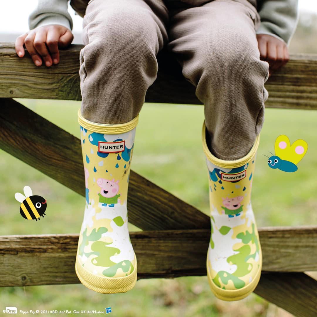 You can shop the latest collection on hunterboots.com, where you can find all of the collab’s must-haves for the season. This adorable collection includes wellington boots, a backpack, an umbrella, and boot socks, which all come complete in various Peppa-themed prints.