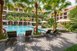 Where to stay: Blending contemporary comfort with a prime central location, Senna Hue Hotel, and Booking.com Traveller Review Award 2026 winner, is a stylish base for exploring the city’s cultural and culinary highlights. Guests can relax in modern rooms overlooking gardens or the outdoor pool, enjoy on-site dining, and step out easily to reach Dong Ba Market, the Imperial Citadel, and the Perfume River. The hotel’s calm atmosphere and amenities make it a welcome retreat after days spent discovering Huế’s layered history.