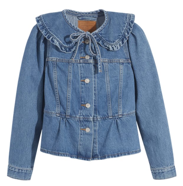 Part Trucker Jacket. Part prairie blouse. All original. With an oversized, ruffled collar, self-tie, and slightly puffed sleeves, this new favourite is in a class entirely of its own. And because the collar’s reversible, it’s like having two jackets in one.