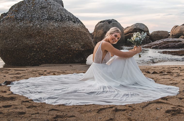 First and foremost when planning your destination wedding outfit, assess the climate of the country. While some do travel overseas to get married surrounded by snow, destination weddings are commonly held in hot climes, with beach weddings being one of the most popular options.