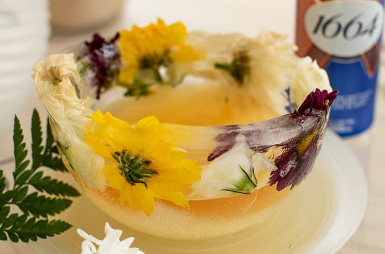 Directions: Muddle raspberry and mint gently in glass. Add in your rum, simple syrup and ice. Top with 1664 Rosé Beer.