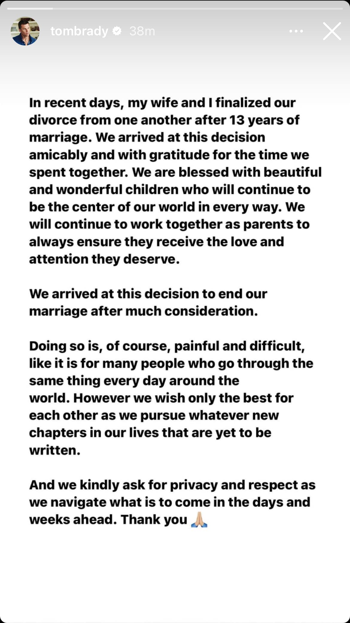 As with any celebrity news, Brady and Bundchen were forced to publicly announce the finalization of their divorce. Both Brady and Bundchen seemed to have parted amicably and sought to keep the media out of their affairs in this stressful time.
