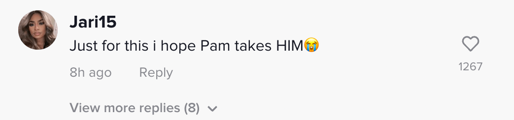 “Pam if I died” was written in the TikTok. Although it has since been deleted, the original caption of the video was “Pls guys I gotta make jokes it’s how I cope”.