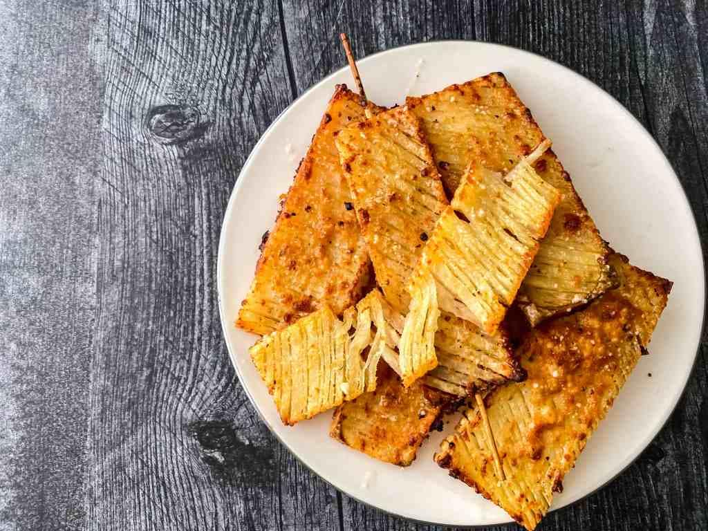 Garlic and potatoes seem to just naturally go hand in hand. And since garlic and potatoes both seem to be two of everyone’s favourite foods, naturally the cooks on TikTok have been finding every which way you can prepare them! This recipe in particular promises a crispy fritter-like potato with an accordion-sliced surface. The video even includes a quick mayonnaise-based dipping sauce.