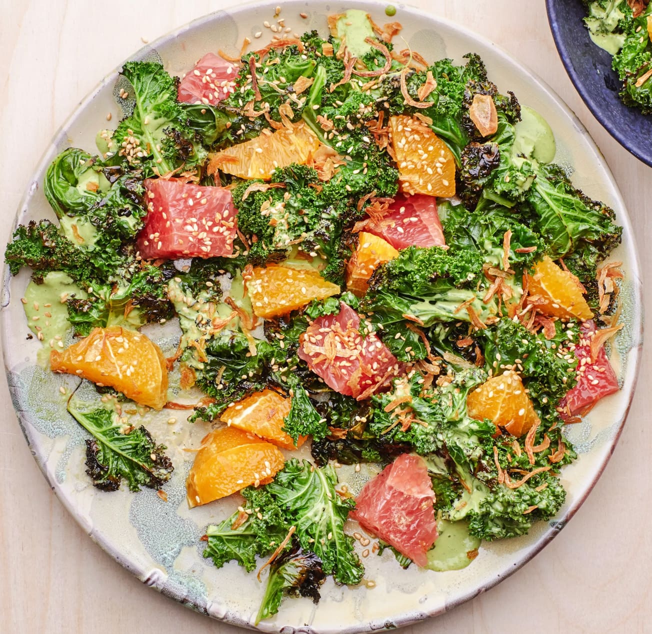 There is nothing yummier and refreshing than a citrus salad. This charred kale, citrus, and green tahini salad is an easy meal for when you are missing the hot summer days this winter.