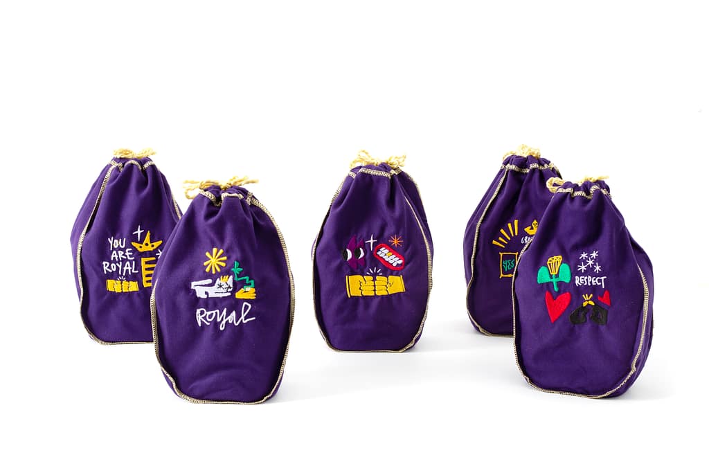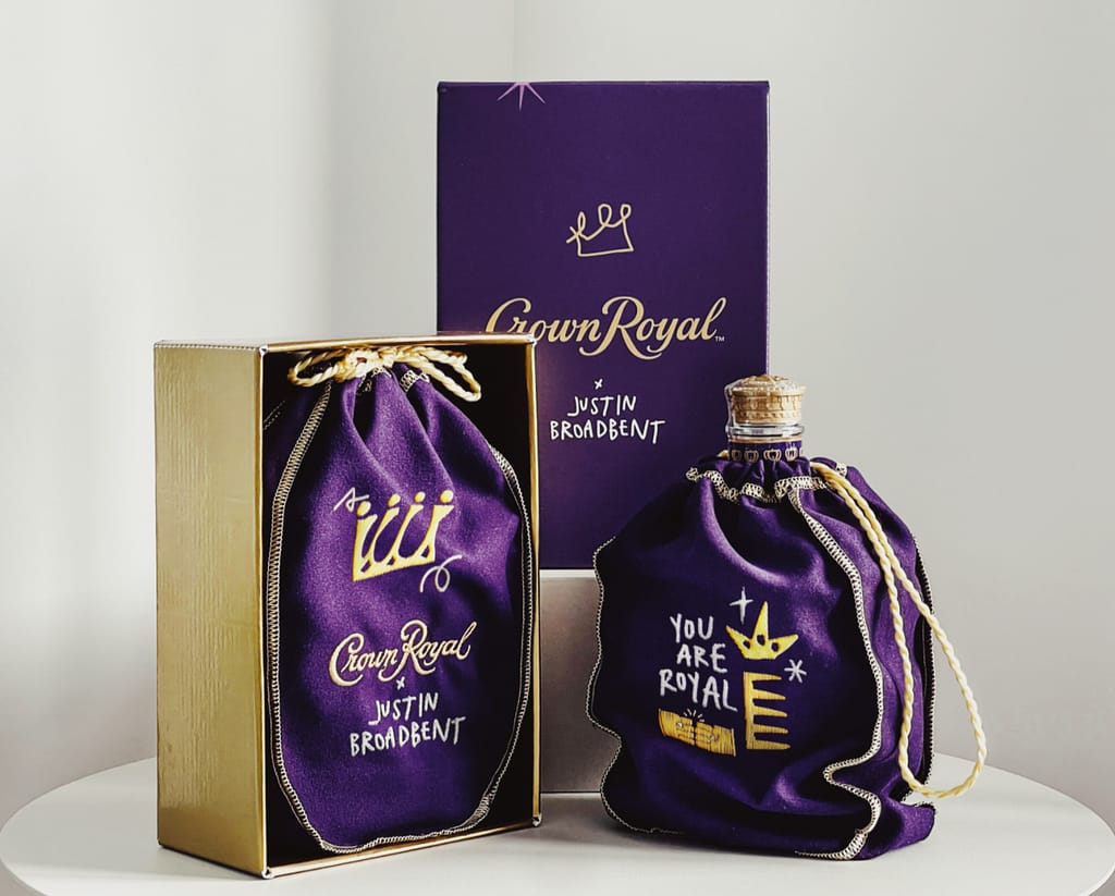 What was once described as opulence, luxury, and decadence is no longer. Justin has modernized Crown Royal’s icon purple bag with his custom designs to introduce a new definition of royalty. His reimagined royal symbols playfully subvert how we perceive royalty, making it feel more accessible and bringing it into the everyday. With his visual style, Justin takes the pomp out of royalty, defining it not by how expensive or elusive something is, but rather by how much we care for and treasure it.