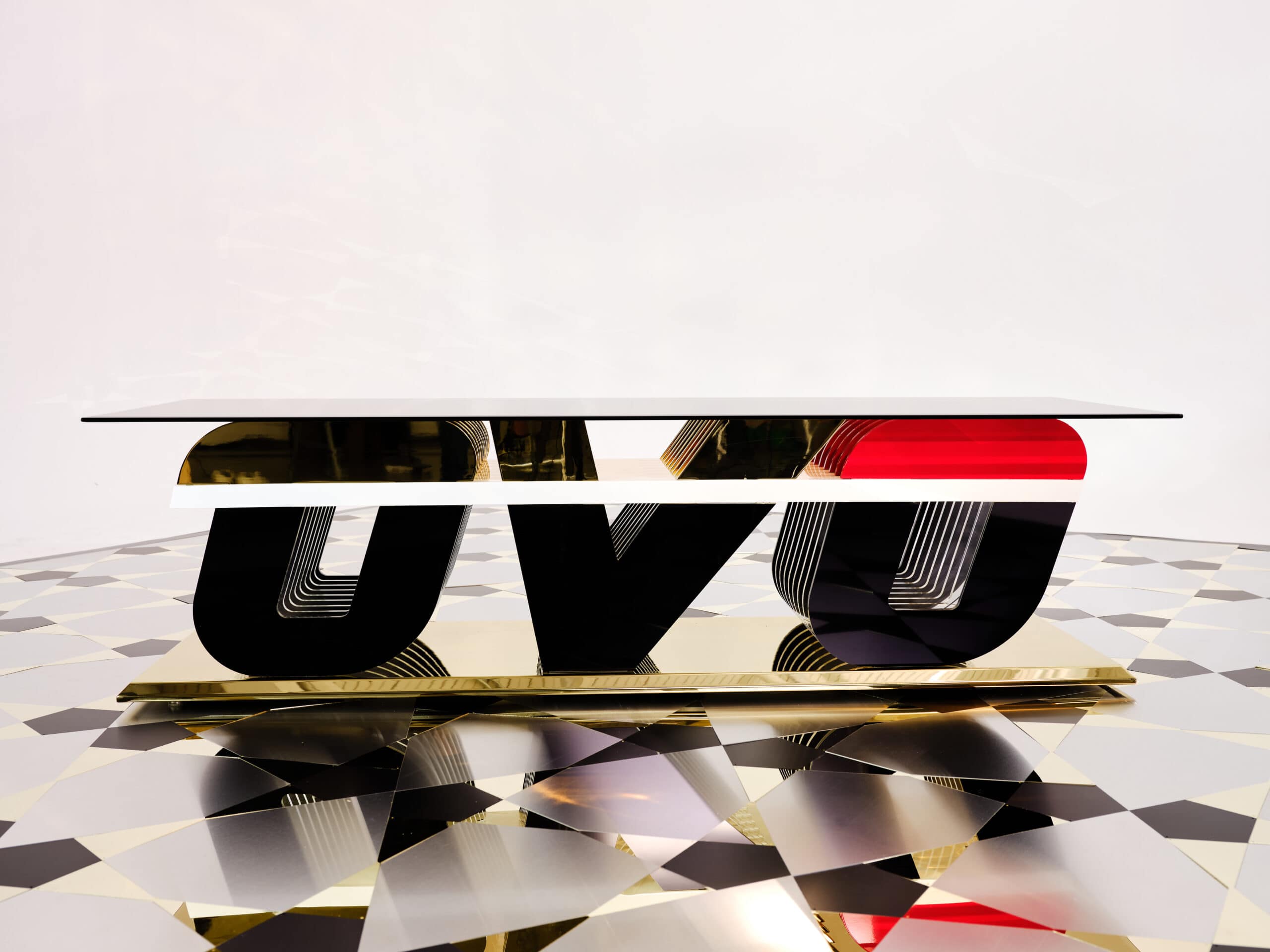 We wanted to make the table would appear seamless. This is always a challenge. We had to look at where joints and fastenings would happen and create illusions that the connections occurred naturally. Through Futurezona trade secrets, we were able to engineer a seamless experience with the structure. We also had to honour the original OVO design to keep the standard of the brand and its flawless aims. The logo had to be on par with all the entities of Drake’s brand.