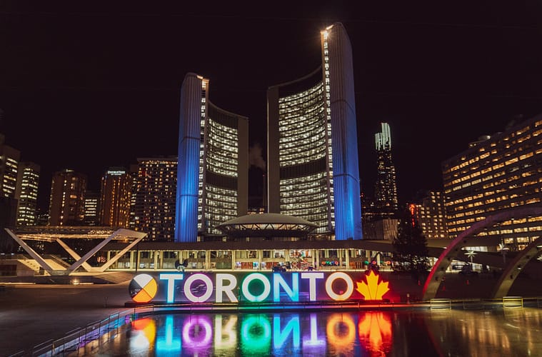 City Hall and Nathan Philips Square are beautiful during the day but the best time of day to go is at night when you can see the Toronto sign all lit up.