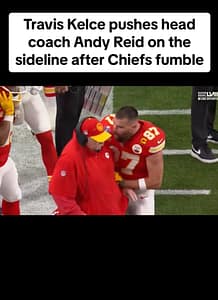 As you can see in the clip, Kelce supposedly pushes Reid on the sideline after the Chiefs fumble. People in the comment section of the above clip are not allegedly happy with Kelce’s behavior because it seems as though Reid almost loses his balance and falls after Kelce goes up to him.
