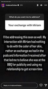 When it comes to Miriam, Uche also explains that he’ll be going into more detail soon but that their interaction had “nothing to do with the color of her skin.” Instead, it allegedly had to do with an exchange that the duo had in the pods and some information he received after.