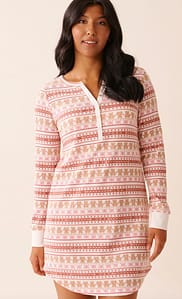 Teddy Bear Print Waffle Knit Long Sleeve Sleep Shirt