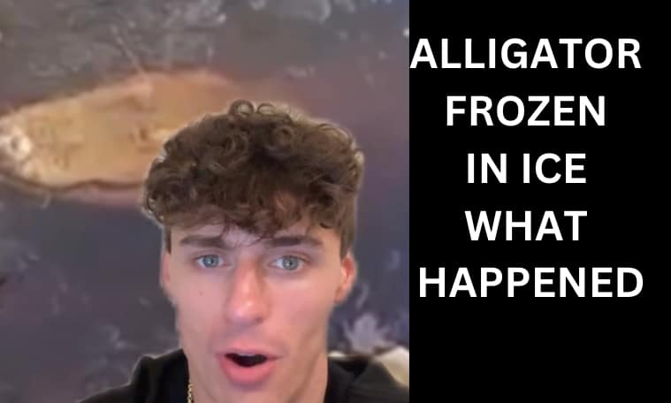 According to this video posted by user @noahglenncarter, an alligator frozen in ice is making waves online. Here’s what happened allegedly.