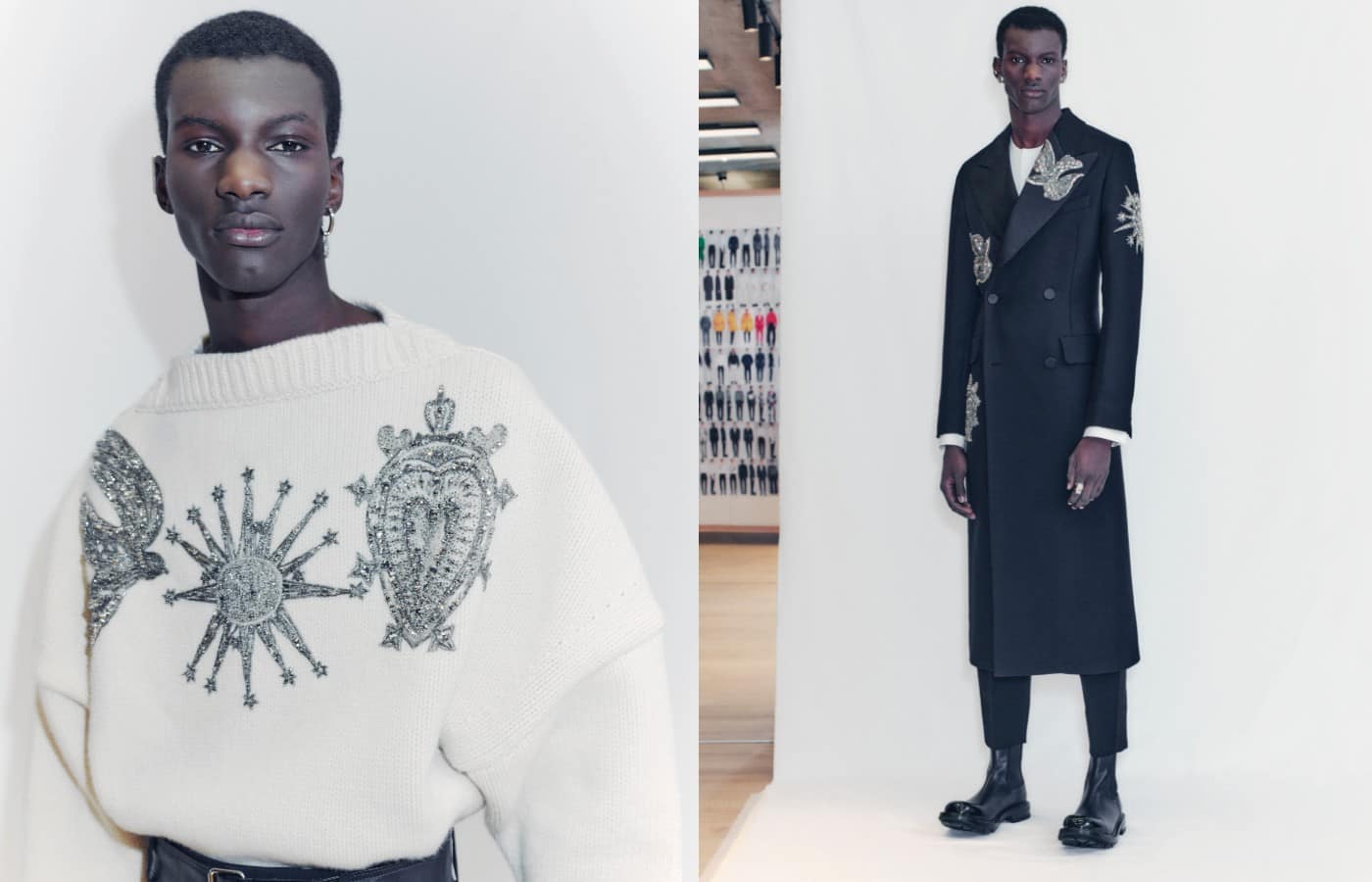 British fashion house Alexander McQueen has just released its collection for fall/winter 2021. Wider silhouetted bottoms and bold paper-cutout printed suits pair with the brand’s classic, domineering leather boots to create a stripped-back yet strong and stoic look. Even in a more minimal design scheme, the collection still commands attention and holds that signature McQueen flair.