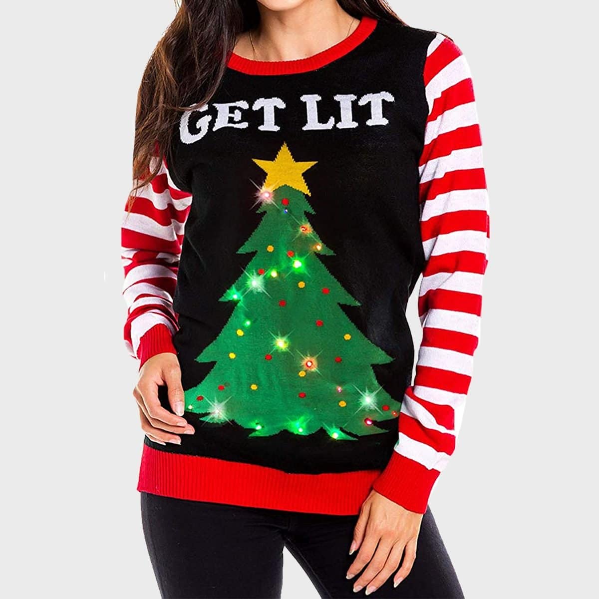 In all the hubbubs of shopping and cooking and decoration and baking, it’s easy to forget the real reason for the season: the birth of Jesus. This is one of the best ugly Christmas sweaters since it serves as a not-so-subtle reminder. It also makes for a funny gag gift if you are looking for any ideas.
