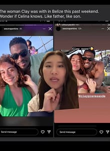 The images are reportedly of him and another woman in Belize and the caption questions whether or not Celina knows about her.