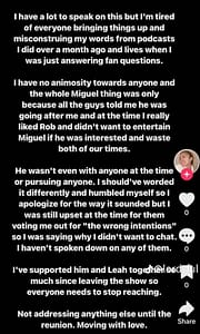 She also alleged that she supported Miguel and Leah together since leaving the show.