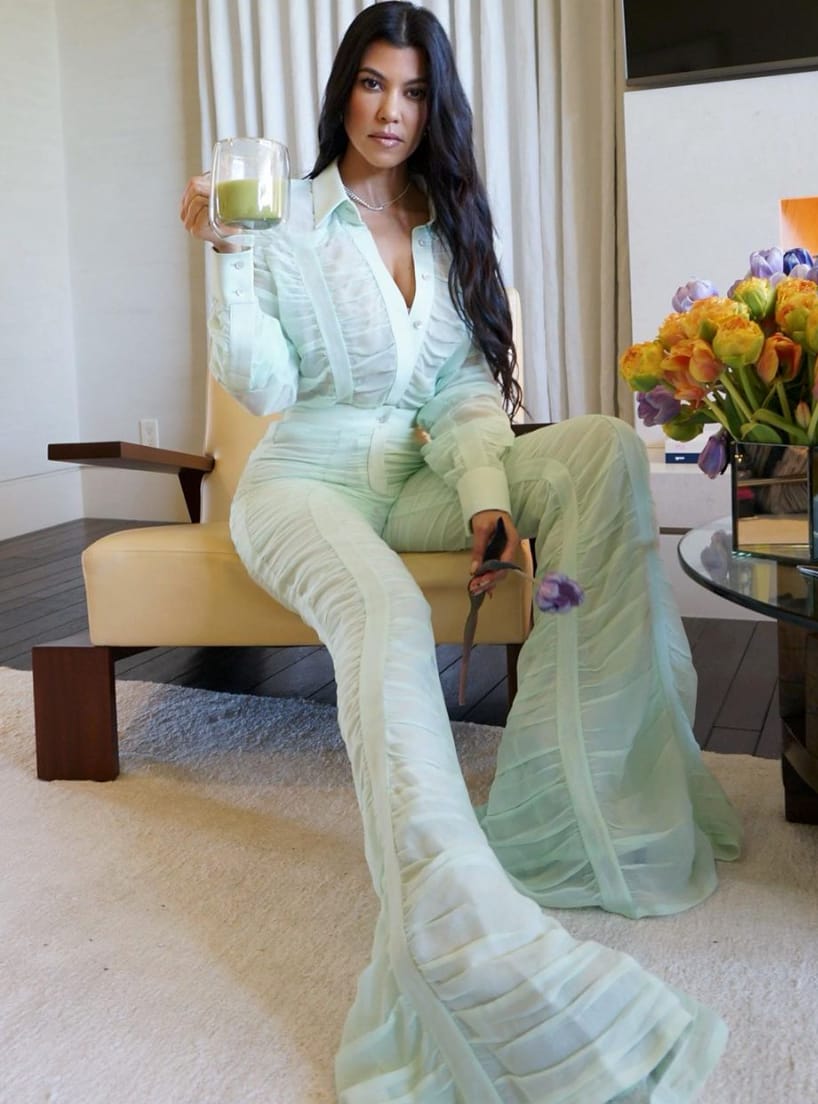 Kourt is giving us major mermaid vibes in this look and we’re here for it! She’s rocking this pale matcha-coloured set in the best way possible because it elongates her legs and compliments her gorgeous hair. We’re loving Kourt’s take on one of the hottest colours of the summer.