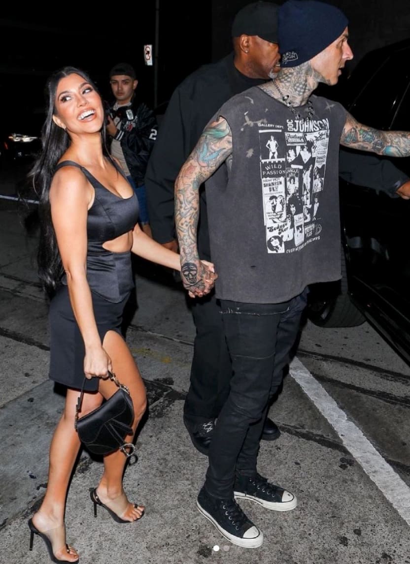 One of Kourt’s most recent looks is from a night out she shared with Travis Barker when they were caught going to an event together. This look is super on-trend because she’s rocking all of this season’s latest fads – from cutouts to barely-there heels to mini bags, this look is super trendy and we can’t wait to try it during our next night out on the town.