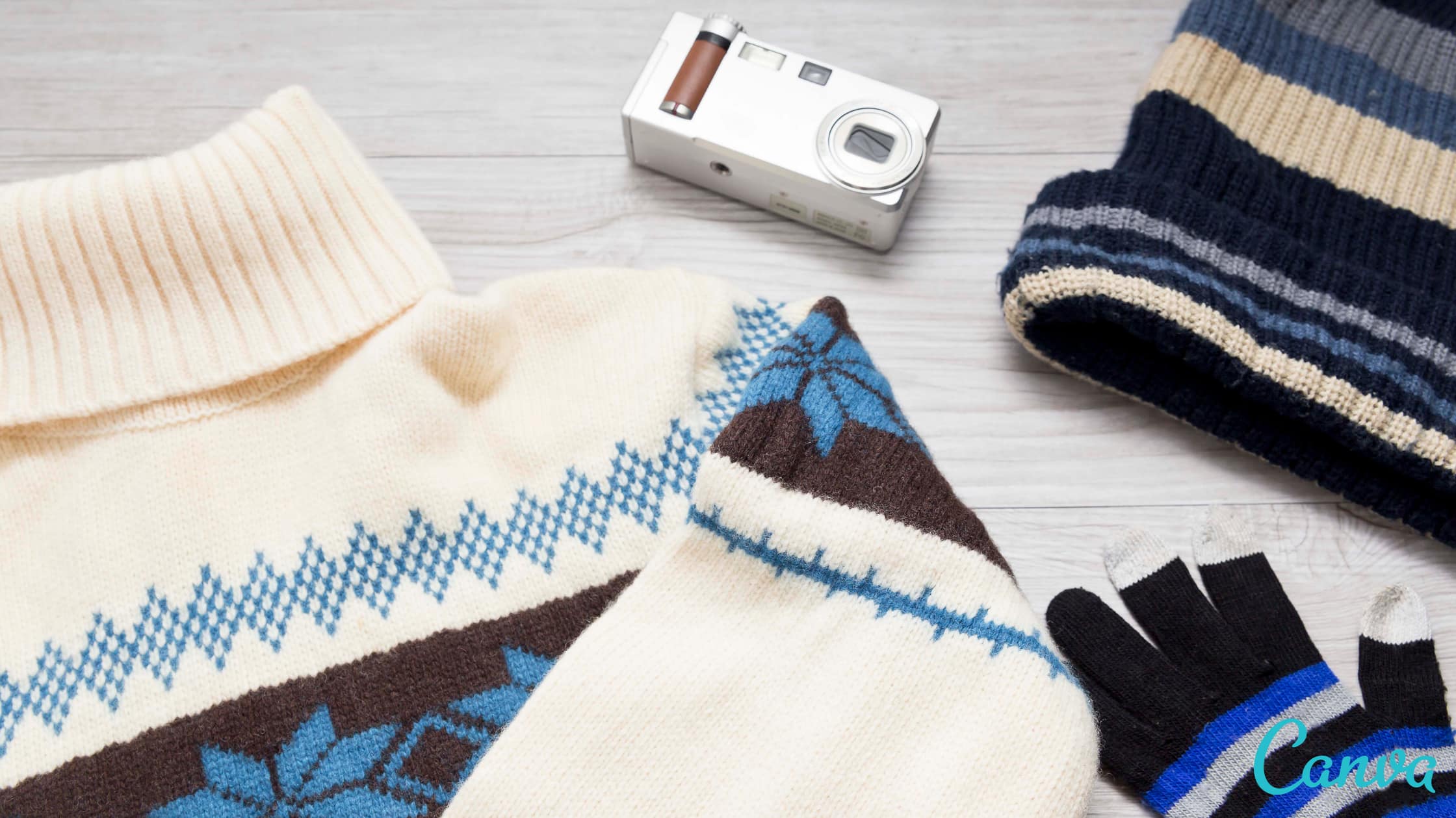 Beanies keep your head warm and add a stylish touch to any winter outfit, cream or beige beanie will do and pair it with a big fluffy scarf. Depending on your holiday destination, a pair of light gloves might be a good investment and a few pairs of wool socks to keep your feet warm and comfortable in boots all day long.