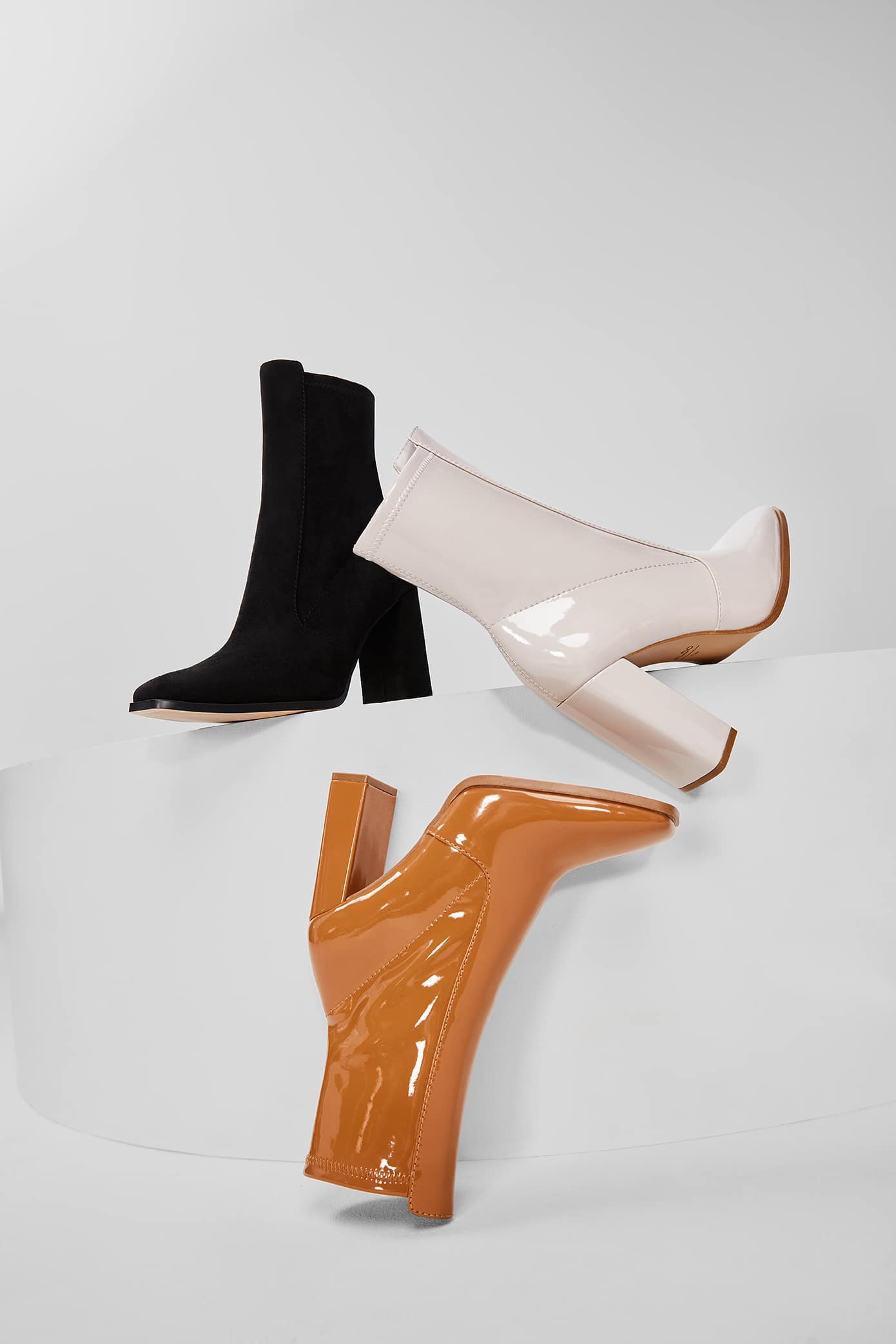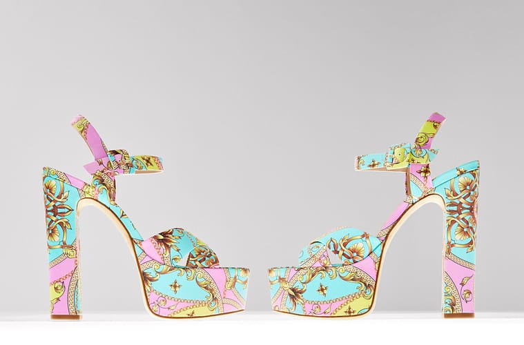 The platform craze is back and bolder than ever. These eye-catching satin heels with a chunky platform are sure to turn heads this season. Bold interpretations of the classic Mary Jane, strappy retro sandal, and sultry stiletto exude nostalgic glamour and energy. These heels make an impressive statement with ankle straps, featuring patent designs, studded embellishments, and vibrant, showstopping colours.